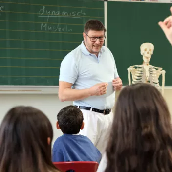 Ein Oberarzt im Unterricht – dieses seltene Lernerlebnis wurde jetzt den beiden dritten Klassen der Martin-Grundschule im Trierer Norden durch die Kampagne "Zeigt her Eure Füße" geboten. Der Orthopäde Dr. med. Arne-Björn Jäger aus dem Brüderkrankenhaus erklärte den Kindern die Bedeutung von Bändern und Bandscheiben, veranschaulichte die Funktion unserer Füße und erzählte Wissenswertes zum Wachstum der Wirbelsäule.