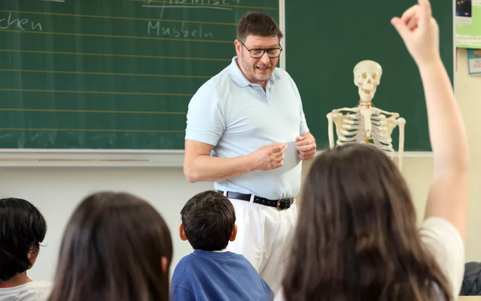 Dr. Jägers Konzept scheint hingegen zu funktionieren, Lehrerin Ulrike Kertels kann stolz auf ihre Schützlinge sein. Die haben sich nicht nur toll engagiert, sondern auch gleich noch die Unterrichtsstunde überzogen. Während die Kinder in die Pause dürfen, schiebt Dr. Jäger schon das schuleigene Skelett-Modell in den benachbarten Klassenraum, wo die 3b schon auf ihn wartet.